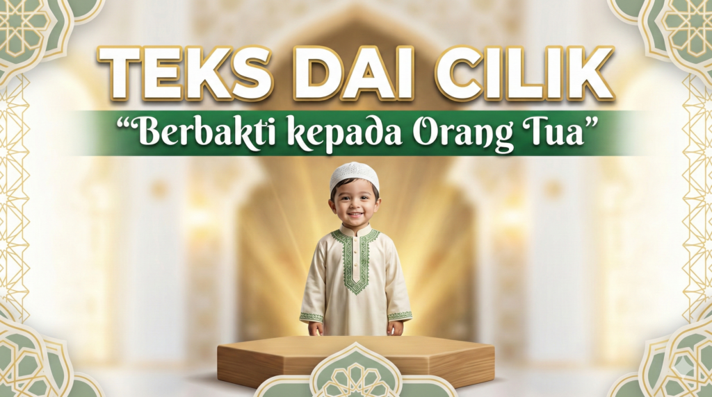 Teks Dai Cilik Tema Berbakti kepada Orang Tua. Berbakti kepada orang tua adalah nilai utama dalam pendidikan karakter anak. Karena itu, banyak sekolah dan lembaga pendidikan memilih tema ini untuk kegiatan dai cilik. Tema ini sangat dekat dengan kehidupan anak. Selain itu, pesan moralnya sangat kuat. Oleh sebab itu, teks dai cilik tentang bakti kepada orang tua selalu dicari banyak guru dan orang tua.